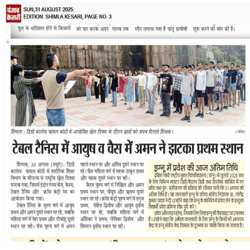 The Department of Physical Education at Government Degree College Chail-Koti, established in 2015, plays a vital role in promoting physical fitness, sports participation, and holistic development among students by integrating structured physical activities with scientific sports education. The department aims to nurture disciplined, confident, and health-conscious individuals through quality instruction, practical training, and values-driven sports programs. It offers a range of academic components including Discipline-Specific Courses, Skill Enhancement Courses, and Generic Elective courses, supported by hands on training in athletics, team games, martial arts, fitness modules, and wellness practices. With qualified faculty, the department provides essential sports facilities including outdoor playgrounds, indoor activity areas, and fitness equipment that support both academic and competitive sports development. The department regularly conducts intramural competitions, annual sports meets, coaching camps, and inter-college participation, while also organizing fitness awareness initiatives and community outreach activities in collaboration with local institutions. It encourages sports sciences, sports psychology, training methodologies, and performance enhancement. Looking ahead, the department plans to upgrade and expand sports infrastructure, establish a modern fitness center, and enhance student opportunities and promote a strong sports culture within the college.